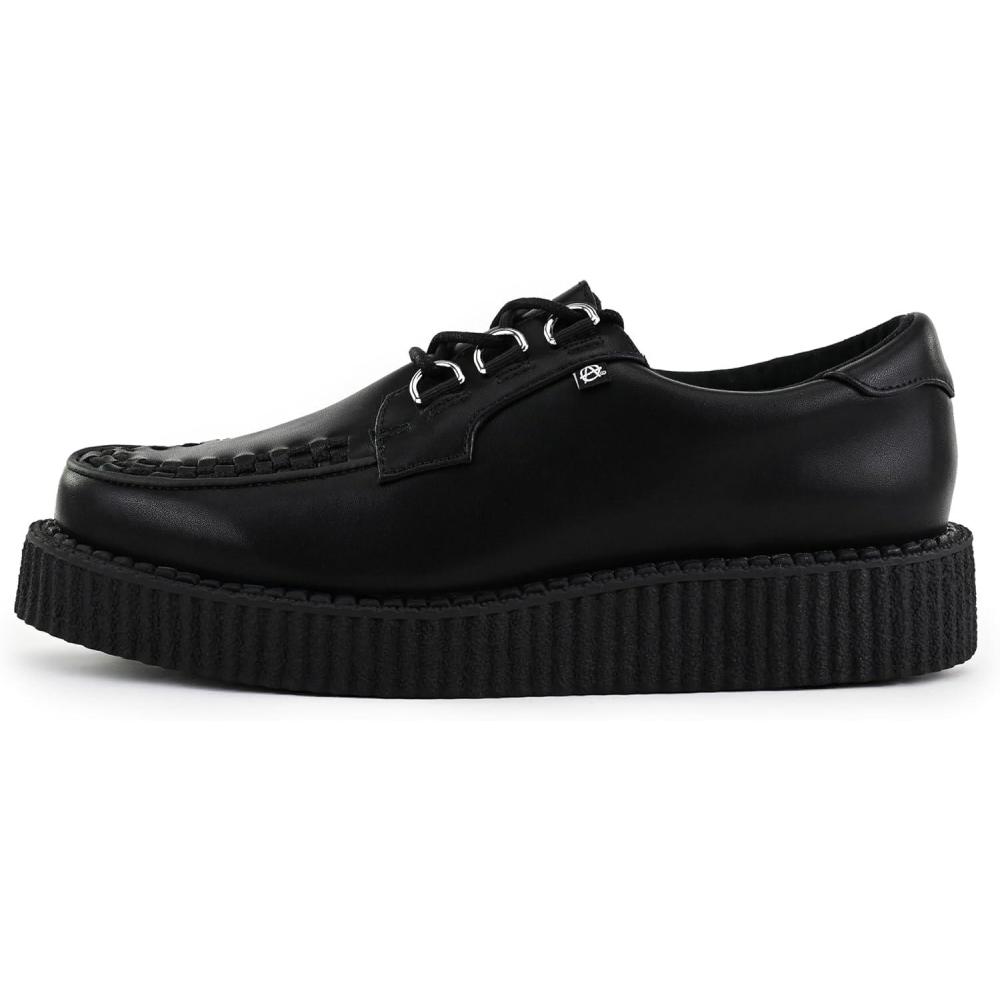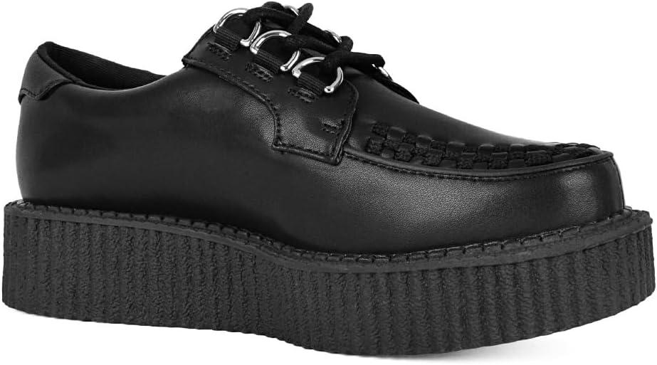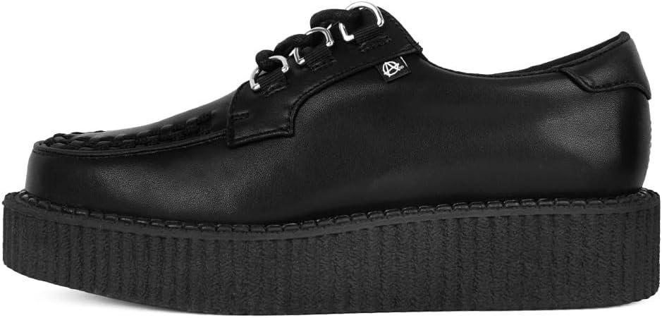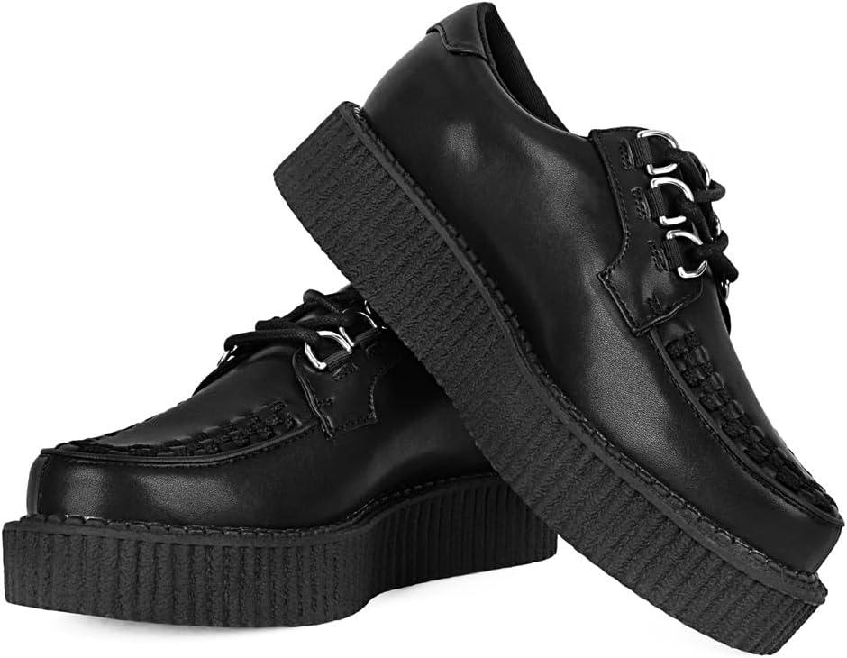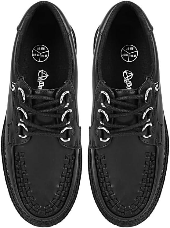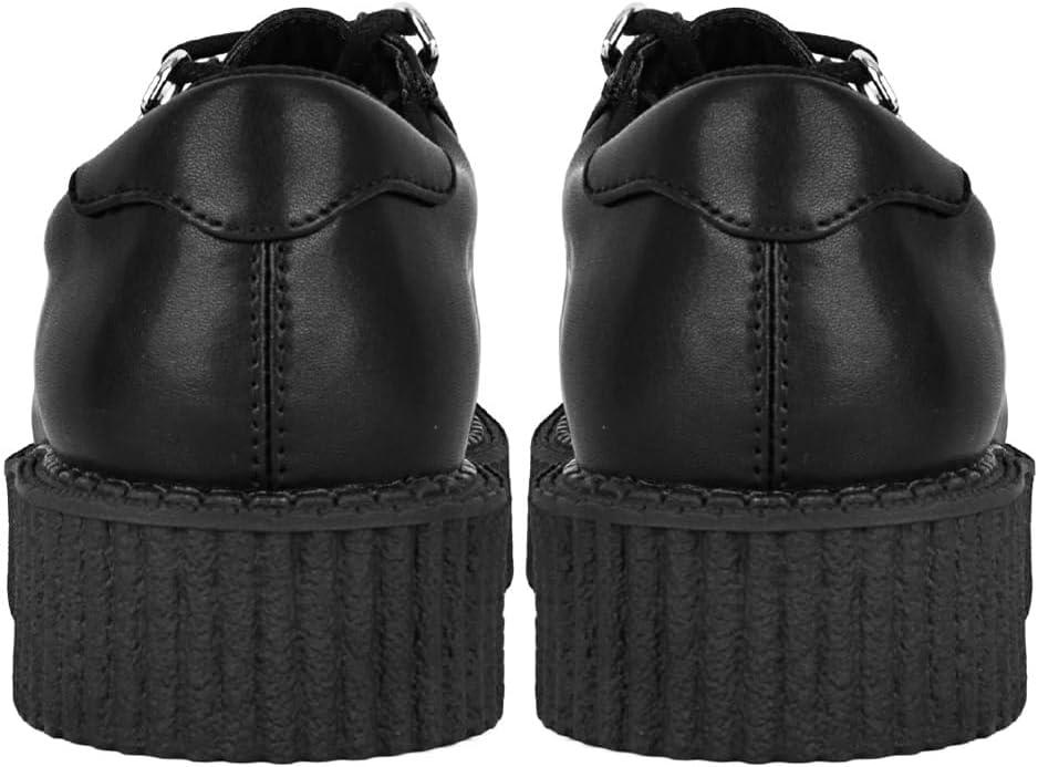 Step into Anarchic Creepers — a twist on our crowd favorite classic round toe creeper featuring our old school ’91 TPR sole! Features a vegan friendly black faux leather microfiber upper with woven interlace detailing and 3 D-ring lace up fastening. Has twill lining, foam padding insole, and a low sole platform that is about 1 ½” at the heel and ¾” in the front. Anarchic Creepers are a budget friendly alternative to our premium brand but delivers the same high level manufacture to outperform and give better value than any of the flimsy copycat creepers on the market.