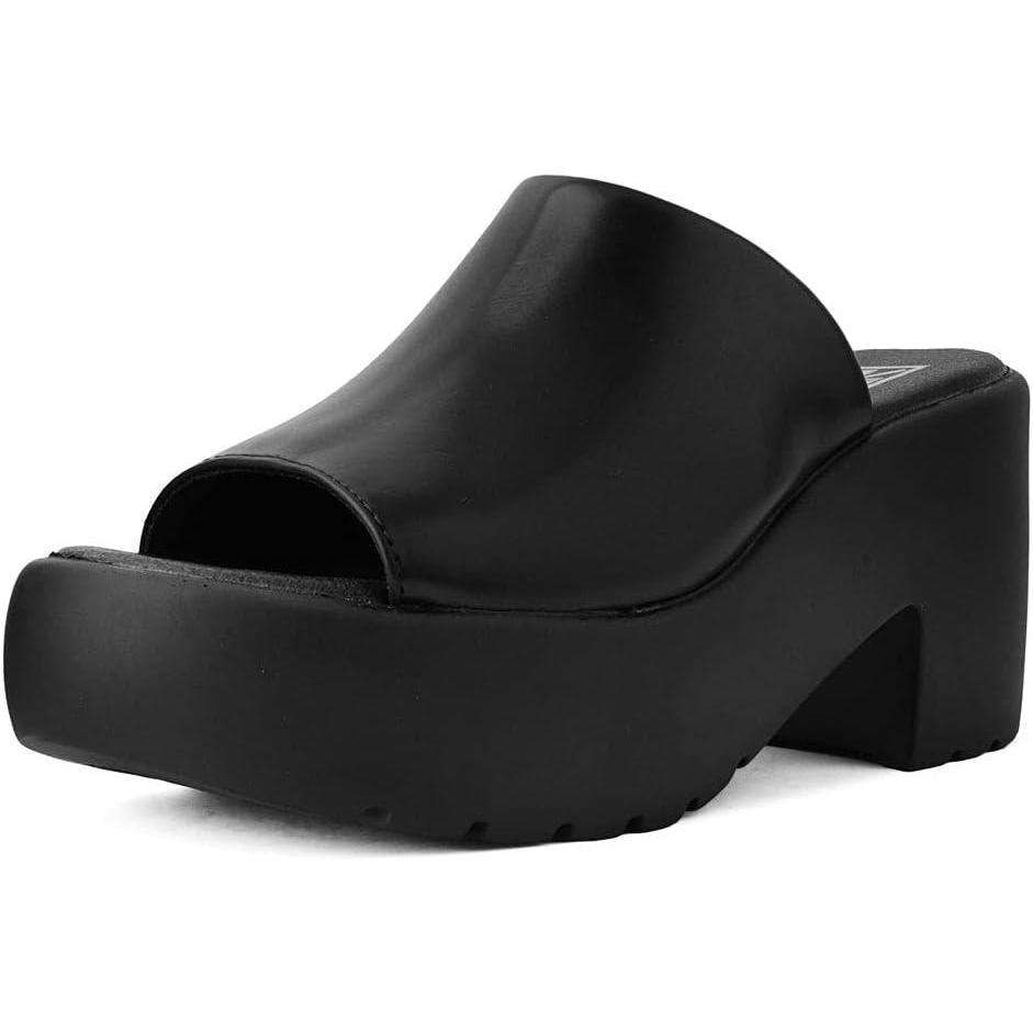 Bring back that 90’s style with these chunky mule heels. The upper is made of a vegan friendly soft burnished PU with minimal detailing for optimal styling. Features a bubble heel that stands at 3 1/2” and 1 ¾” in the front.