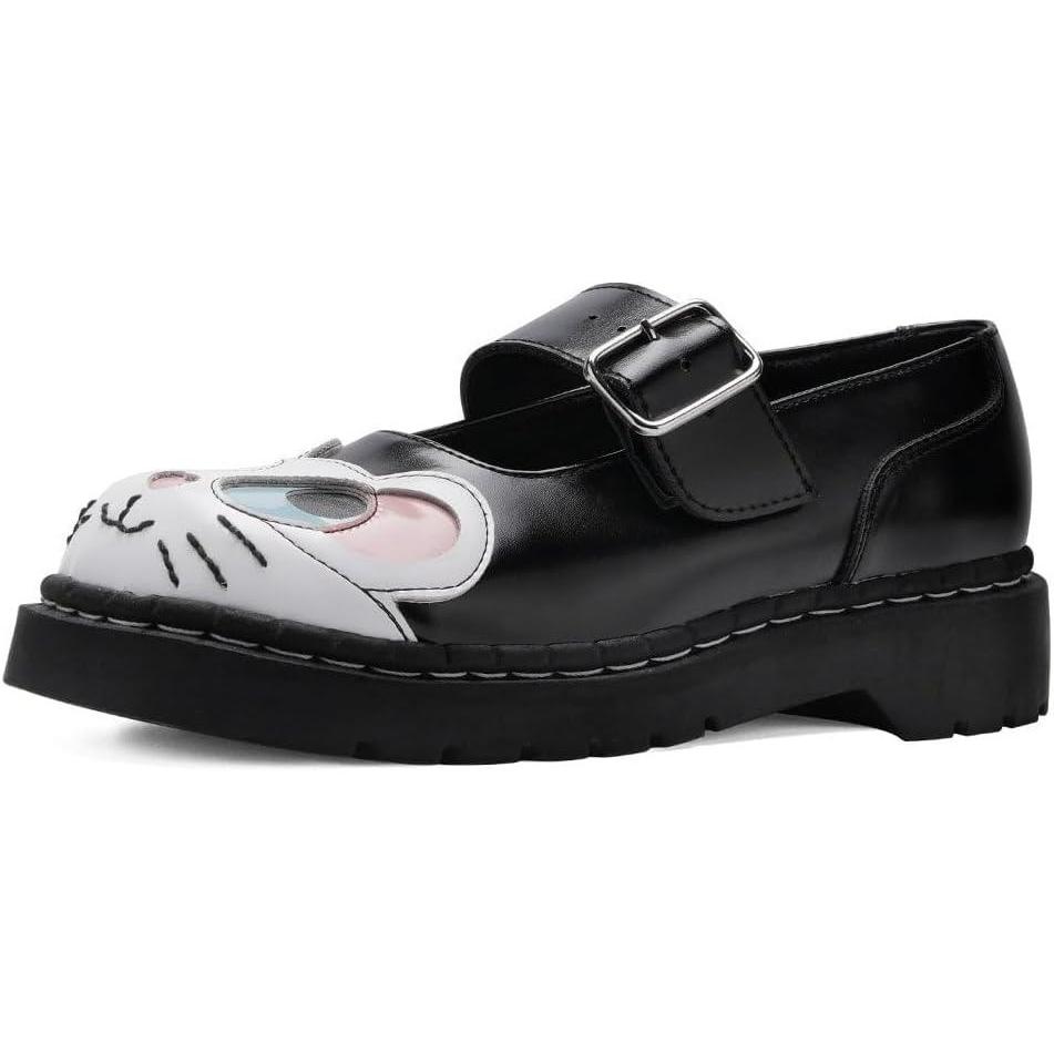 T.U.K. Kitty Cat Mary Jane Shoes for Women, Round Toe Ankle Strap Oxford Shoes(Black Mouse)