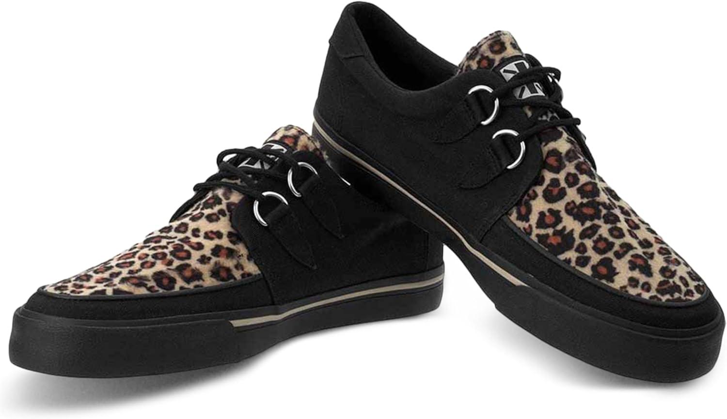 TUK Suede Creeper Sneaker Shoes for Women and Men, D Ring Lace Up Shoes(Black/Leopard)